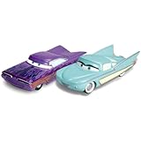 These unique character cars deliver great moments from the upcoming Disney/Pixar movie, CARS. Recreate your favorite scenes from the movie, or rev up your own fun with new scenarios. Flo is a 1950's Motorama show car who owns Flo's V8 Cafe the favorite gathering spot in Radiator Springs. Ramone is a 1959 Impala who runs Ramone's House of Body Art, the local paint and body shop. This stylish couple fell in love at first sight and have been married ever since. Includes two character vehicles. Vehicles measure 3.5"L x 1.5"W x 1"H and include Flo and Ramone.